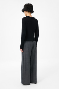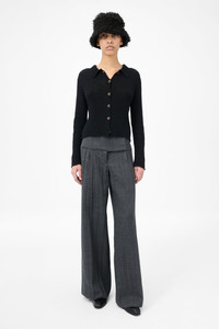 Details · Italian fabric · 55% Alpaca 22% Recycled Polyamide · 15% Recycled wool 8% Polyamide · Fuzzy, textured knit · Brown mother of pearl buttons · Point collar · Elongated sleeves · Slightly cropped fit · W4223MB Description Our Mazzy Polo in Black Fuzzy Alpaca. Produced in a hairy alpaca, recycled polyamide and wool blend fabric, the womens Mazzy Polo has a slightly cropped, true to size fit and features a point collar, elongated sleeves and mother of pearl buttons. This garment is manufactured using a carefully sourced yarn. The natural characteristics of the yarn, combined with the construction of the knit allows the garment to expand when worn. The garment shall be shaped by its wearer and naturally distress over time to finish the design process. To help keep the integrity of the garment please store the garment folded.