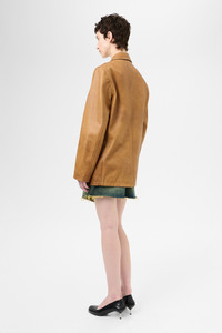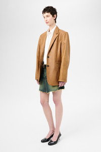 Details · Italian cow leather · Single breasted · Notched lapel · Horn buttons · Welt pockets · Single back vent · Fully lined · Darted for shape · Relaxed, tailored fit · W2259OBS Description Our Opening Blazer in Burnt Sugar Leather. Produced in a smooth Italian cow leather, the womens Opening Blazer has a relaxed, tailored fit and features a notched lapel, three welt pockets, horn buttons and a single back vent. This product is crafted from carefully sourced leather. As a natural material, leather carries subtle traces of the animal's life. These natural imperfections bring a unique character to each product, expressing an original and authentic look. The product shall be shaped by its wearer and naturally distress over time to complete the design process.
