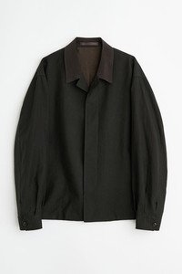 Details · Italian fabric · 65% Linen 35% Polyamide · Piece dyed · Hidden button placket · High break point · Slanting pockets · Buttoned cuffs · Half lined with floating back lining · Contrasting lining · Contrast collar · Centre back split and vent · Corozo buttons · Relaxed fit with true shoulder line and regular sleeve length · M2260PSB Description Our Pack Blazer in Soot Black Techflax. Produced in an Italian linen and polyamide blend fabric, piece dyed for a deep soot tone, the style plays into workwear codes with a sharpness influenced by classic tailoring, offering a relaxed fit with a true shoulder line, regular sleeve length, buttoned cuffs, a high break and slanted pockets, plus a clean hidden button placket. Half lined with a floating back lining, the center back split and vent open with movement, letting the slightly contrasting lining glimmer, finished with Corozo buttons, a contrast collar, and a viscose and acetate lining.