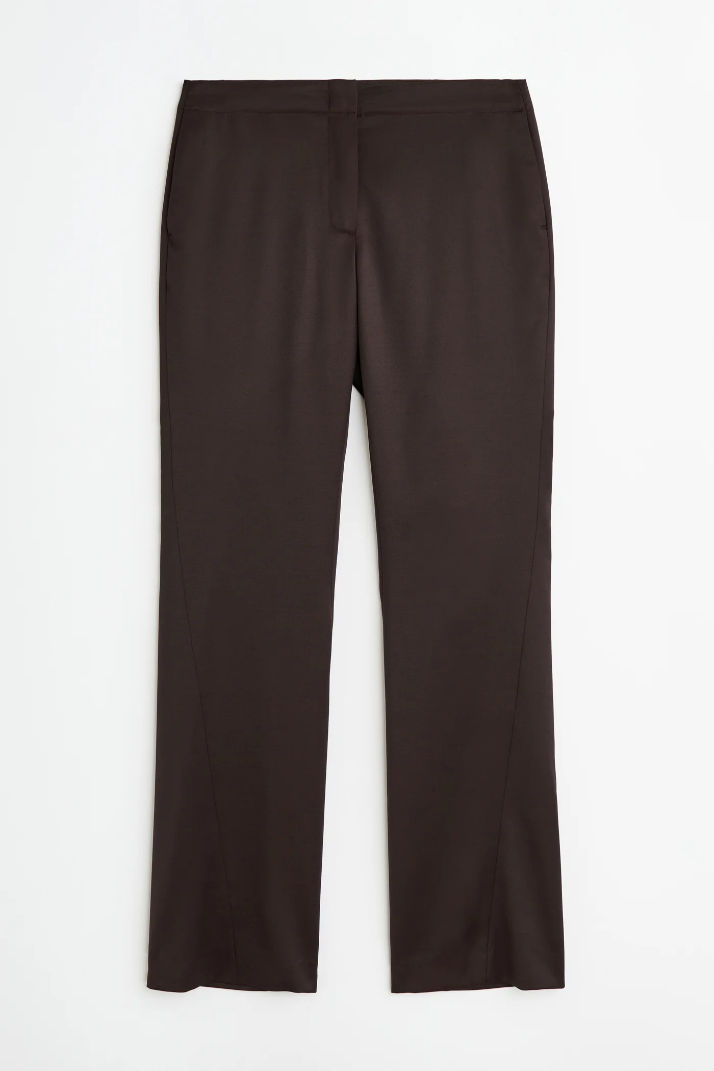 Details · Italian fabric · 51% Polyester 48% Virgin Wool 1% Elastane · Twisted side seam · Inseam pockets · Darted for shape · Back jet pocket · Hidden hook closure · YKK zip fly · Low rise · Straight fit · W2264PCG Description Our Poise Trouser in Crushed Grape Formflex Weave. Produced in Italian formflex weave fabric blending polyester, virgin wool, and elastane, the Poise Trouser has a low rise with a straight fit and features a twisted side seam, inseam pockets, darted for shape, a back jet pocket, hidden hook closure, and YKK zip fly.