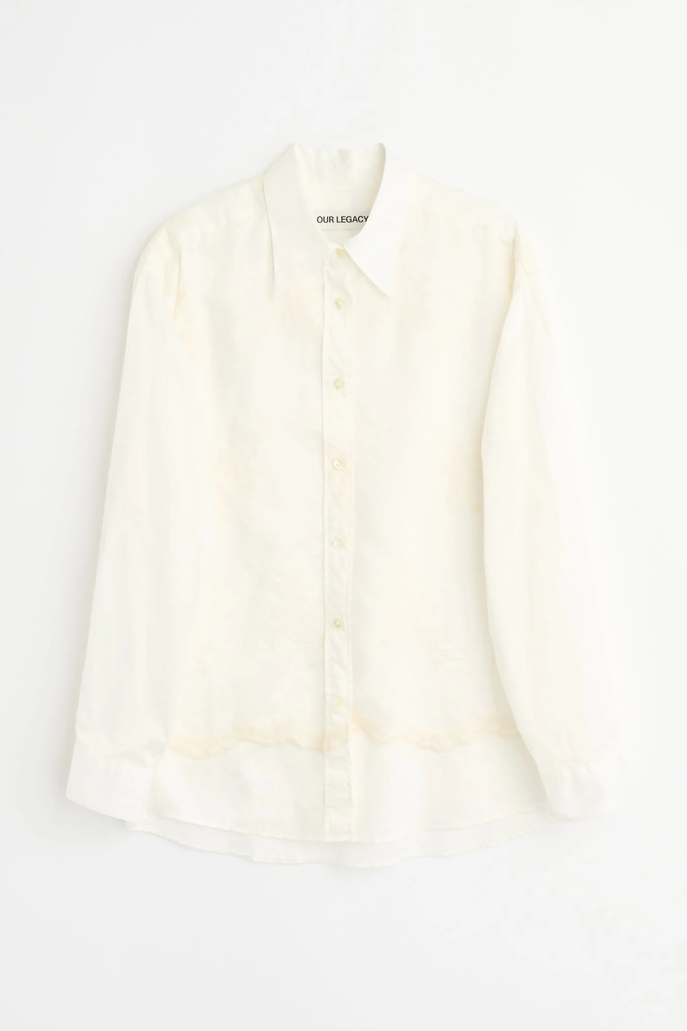 Details · Chinese fabric · 100% Cotton · Contrast layer with flower motif · Mother of pearl buttons · Single chest patch pocket · Curved hem · Mitered cuffs · Wrap side seams · Relaxed, slightly shaped fit · W2262PIC Description Our Precious Shirt in Ivory Cloud Breezey Cotton. Produced in a lightweight Chinese cotton fabric, the women’s Precious Shirt has a relaxed, slightly shaped fit and features a contrast layer with a flower motif, mother of pearl buttons, a single chest patch pocket, wrap side seams, mitered cuffs and a curved hem.