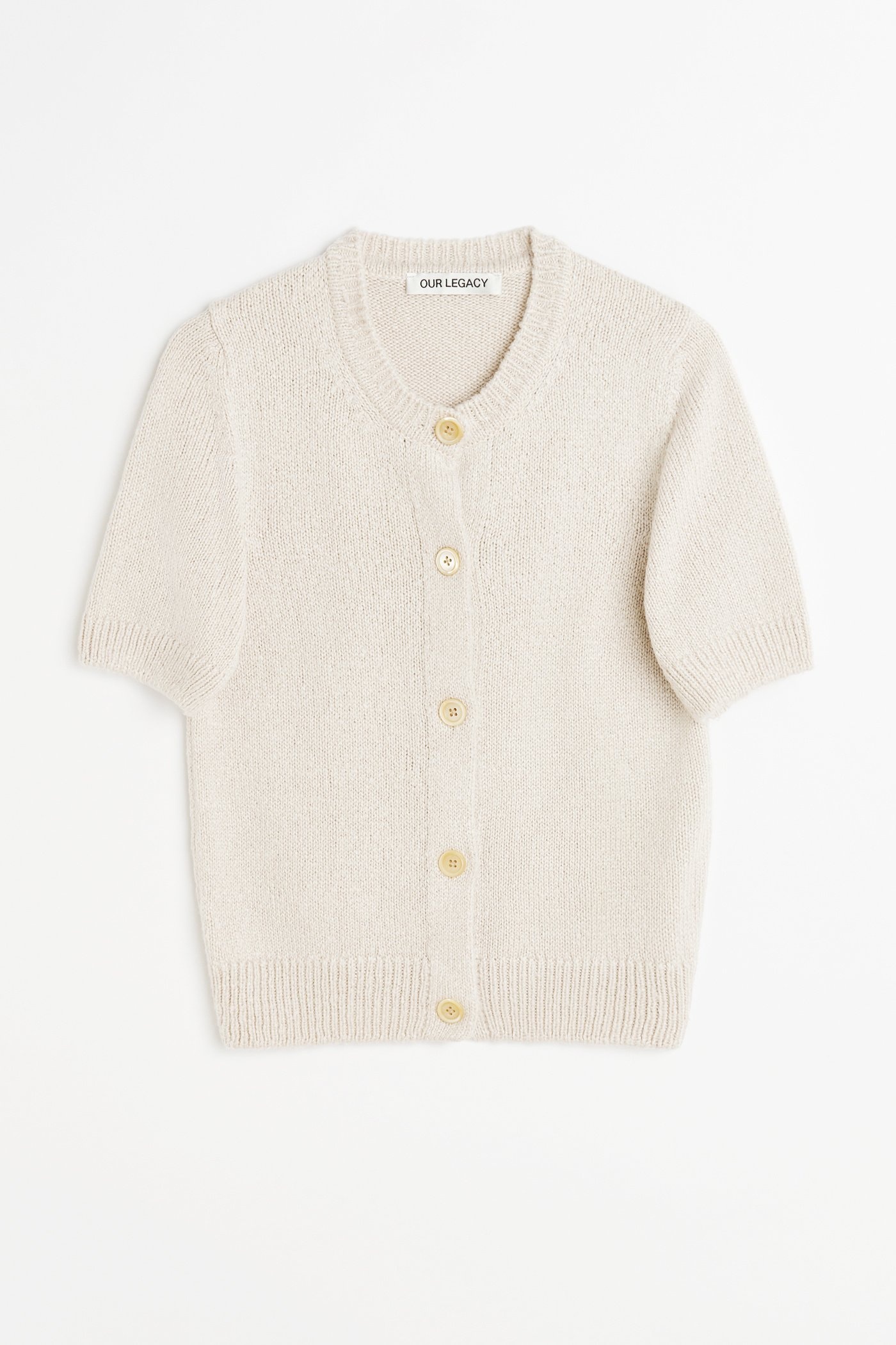 Details · Italian yarn · 100% Silk · Plain knit · French shoulders · Mother of pearl buttons · Ribbed collar, cuffs and hem · Relaxed, straight fit · W2253SO Description Our Shrunken Cardigan in Oyster Cherub Silk. Produced in a soft Italian silk yarn, the women's plain knit Shrunken Cardigan has a relaxed, straight fit and features french shoulders and ribbed collar, cuffs and hem. This garment is manufactured using a carefully sourced yarn. The natural characteristics of the yarn, combined with the construction of the knit allows the garment to expand when worn. The garment shall be shaped by its wearer and naturally distress over time to finish the design process. To help keep the integrity of the garment please store the garment folded.