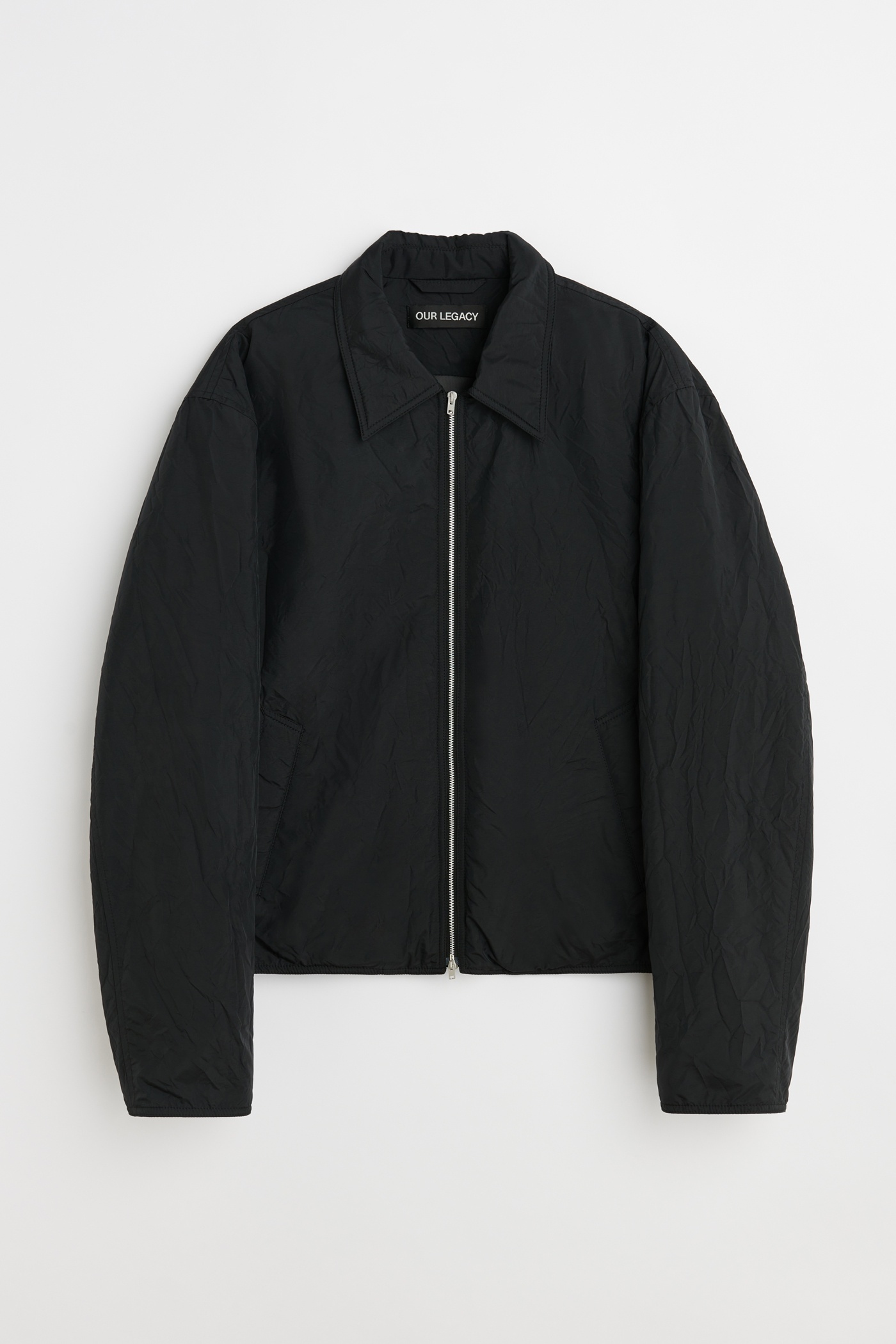 Details · Italian crinkled fabric · 58% Polyamide 42% Polyester · Thermore Ecodown recycled padding · Iridescent solaro effect · Water repellent · Lightly padded · Lampo two way zip · Welt front pockets · Metal Our Legacy rivet · Minimalist, boxy fit · M4241SS Description Our Slight Jacket in Shining Black Crinkle Solaro. Produced in a crinkled Italian polyamide and polyester blend fabric with an iridescent solaro effect, the lightly padded Slight Jacket has a boxy fit and features a Lampo two way zip, metal Our Legacy bean rivet and welt front pockets.