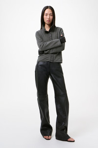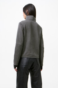 Details · Italian fabric · 79% Cotton 19% Linen 2% Elastane · Pigment dyed · Funnel neck collar · Wide contrast woven placket · Hidden snap closure · Regular fit · W2266TW Description Our Tornado Cardigan in Washed Black Rogue Loopback. Produced in a loopback jersey with a contrasting woven placket, the Tornado Cardigan has a regular fit and a funnel neck, and features a wide placket with hidden snaps. The loopback construction provides a smooth, unbrushed exterior with soft internal loops for breathable comfort. A pigment overdye lends a washed, vintage character with subtle tonal variations and a lived-in softness. This garment is manufactured using carefully sourced material with a unique treatment process that will give each garment an individual shade and appearance. This technique could result in some color bleed onto lighter garments or surfaces. The garment shall be shaped by its wearer and naturally distress over time to finish the design process.