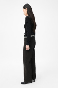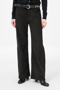 Details · Chinese fabric · 100% Cotton · Twill corduroy · Five pockets · Button fly · Paneled inseam · OUR LEGACY embossed patch · Sit above the hip · Slouchy, wide leg fit · W4255TD Description Our Treble Cut in Dark Brown Twill Cord. Produced in Chinese cotton twill corduroy fabric, the women's Treble Cut has a slouchy, wide leg fit that sits above the hip and features a button fly, five pockets with paneled inseam, and an OUR LEGACY embossed patch. This version takes the classic corduroy design a step further by introducing a unique twill pattern into the weave. The twill structure disrupts the traditional uniform appearance of corduroy, adding depth and visual intrigue to the fabric with a dynamic twist.