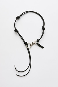 Details · Made in Portugal · Key chain · Italian leather · Chunky knotted cord · Japanese metal hardware · W-ring with engraved OUR LEGACY logo · Hand stitched leather tab · Length 40cm Description Our Udon Ladon in Black Leather. Produced in Italian leather with a chunky knotted cord design, this keychain is handcrafted in Portugal and features Japanese metal hardware, an engraved W-ring with OUR LEGACY logo, and a hand-stitched leather tab. The Udon Ladon is 40cm in length. This product is crafted from leather sourced with care. Leather, being a naturally derived material, carries with it the subtle imprints of the animal's life, including wrinkles, veins, scars, and stretch marks. These natural imperfections bestow a unique character upon each product, lending it a valuable and authentic look. The article shall be shaped by its wearer and naturally distress over time to finish the design process.