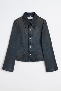 Details · Italian fabric · 100% Cotton · Indigo dyed · Each jacket has unique appearance · Front patch pockets · Metal buttons · Trumpet sleeves · Darted for shape · Straight fit · W4255UD Description Our Union Jacket in Dusty Phantom. Produced in Italian cotton fabric, the women's Union Jacket has a straight fit with darted construction for shape and features front patch pockets, metal buttons, and trumpet sleeves. This fabric is crafted by overdyeing ecru material with a fully sustainable synthetic indigo. Following the overdyeing process, artisanal treatments and fades were applied, resulting in a distinctive dirty blue tone. This garment is manufactured using carefully sourced material with a unique treatment process that will give each garment an individual shade and appearance. This technique could result in some color bleed onto lighter garments or surfaces. The garment shall be shaped by its wearer and naturally distress over time to finish the design process.