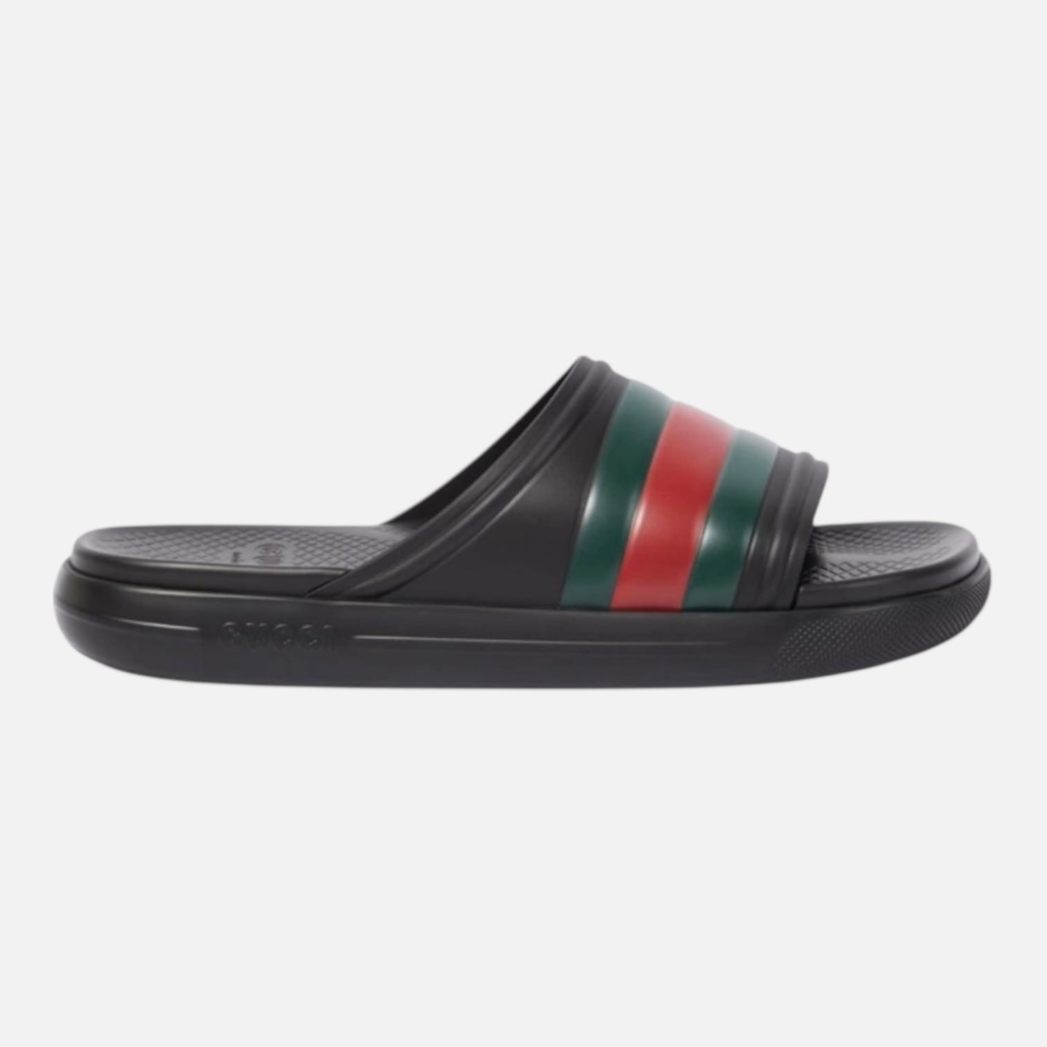 Fabrication : Italie Détails noir bande Web signature bout rond ouvert bride orteil semelle intérieure à logo semelle en caoutchouc ^ Composition Extérieur : caoutchouc 100% Semelle : caoutchouc 100% Doublure : caoutchouc 100% #gucci