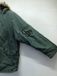 *5 Stay warm in military-inspired style with this authentic Alpha Industries N-3B Parka. Originally developed for the U.S. military, this cold weather jacket features: Color: Military green Size: XL (Chest: 104–112 cm | Height: 175–185 cm) Shell: 100% Nylon Lining & Filling: 100% Polyester Made in China under Alpha Industries' specifications Faux fur trim hood Multiple pockets: front flap pockets, sleeve zip pocket with pen slots Heavy-duty zipper with storm flap and button closure Alpha Industries official tag (CAGE code: 3A382, Knoxville, TN, USA) This jacket is both functional and stylish, ideal for winter or outdoor use. It has a rugged look and is known for its durability and comfort. Tag Size :- XL (All measurements were taken lying flat) Actual size Manual Measurements (approximately): Armpit to Armpit: 27.5 inches Length from top of Shoulder: 34.5 inches Shoulder to Shoulder: 25 inches Sleeves Length: 24.5 inches Condition: An item that has been used or worn previously. See Our listing for full details and description of any imperfections. Please don't expect it to be like new Kindly see all pictures Thank you so much for your visit PAYMENT And SHIPPING: ¦Accept "PAYPAL" Only ¦This item will be ship along with Tracking Number after received a completed payment. all item will be shipped within 2-3 days after receive clear payment. post via international registered/signed for with tracking number. -PLEASE MAKE SURE YOUR ADDRESS IS COMPLETE AND CORRECT. -KINDLY LEAVE YOUR PHONE NUMBER FOR REFERENCE. Etc: Don't Worry About Customs Tax or Fees. I usually Declare all Items as 'Gift' & Declare Value of Item Lower than Original Price. All Items are Sold "AS IS" so Please be Sure to Read The Entire Description and Look at All The Pictures. Any Question and More Details Please Don't Hesitate to Contact Me. ATTENTION : Please pay close attention to measurements provided. Do not rely on tag size as pre-worn items may have been altered, stretched or shrunk & vintage sizes do not directly translate the modern sizes.The best way to ensure a correct fit is to compare our measurements with the measurements of a similar item that you know fits you well.Please enlarge the photos for clearer image. no return and refund.