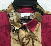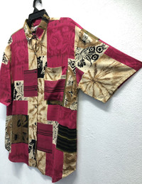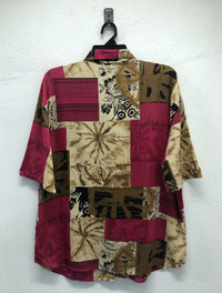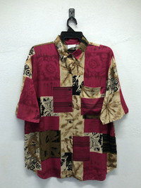 *4 Add a bold, retro flair to your wardrobe with this vintage Bobbie Brooks short sleeve button-up shirt, featuring a striking patchwork design. This shirt combines earthy tones of burgundy, tan, and black with abstract floral and geometric patterns, giving it a distinctive 80s/90s aesthetic. Details: Brand: Bobbie Brooks Size: Large (16/18) Material: 100% Rayon – soft, breathable, and lightweight Made in the U.S.A. Care Instructions: Machine wash cold, delicate cycle; line dry; cool iron if needed Dual-language care tag (English & Spanish) One chest pocket Unique vintage pattern – no two are alike! Perfect for casual wear, vacation, or collectors of vintage fashion. Pair it with jeans or shorts for an effortlessly cool look. Tag Size :- L (All measurements were taken lying flat) Actual size Manual Measurements (approximately): Armpit to Armpit: 23 inches Length from top of Shoulder: 30 inches Shoulder to Shoulder: 21.5 inches Sleeves Length: 11 inches Condition: An item that has been used or worn previously. See Our listing for full details and description of any imperfections. Please don't expect it to be like new Kindly see all pictures Thank you so much for your visit PAYMENT And SHIPPING: ¦Accept "PAYPAL" Only ¦This item will be ship along with Tracking Number after received a completed payment. all item will be shipped within 2-3 days after receive clear payment. post via international registered/signed for with tracking number. -PLEASE MAKE SURE YOUR ADDRESS IS COMPLETE AND CORRECT. -KINDLY LEAVE YOUR PHONE NUMBER FOR REFERENCE. Etc: Don't Worry About Customs Tax or Fees. I usually Declare all Items as 'Gift' & Declare Value of Item Lower than Original Price. All Items are Sold "AS IS" so Please be Sure to Read The Entire Description and Look at All The Pictures. Any Question and More Details Please Don't Hesitate to Contact Me. ATTENTION : Please pay close attention to measurements provided. Do not rely on tag size as pre-worn items may have been altered, stretched or shrunk & vintage sizes do not directly translate the modern sizes.The best way to ensure a correct fit is to compare our measurements with the measurements of a similar item that you know fits you well.Please enlarge the photos for clearer image. no return and refund.