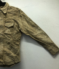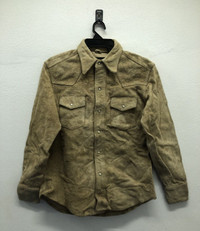 *5 Step up your vintage wardrobe with this stylish and rugged Trans Continents genuine leather shirt. Crafted from real cowhide (牛革), this shirt combines timeless Western design with durable materials. Featuring snap button closures and twin front flap pockets, this piece offers both functionality and fashion. Brand: Trans Continents Material: 100% Genuine Cowhide Leather Color: Light Brown / Tan Size: F (Free Size – fits like a medium or tailored large; check measurements for accuracy) Made in: China Condition: Pre-owned, great vintage condition. Natural wear consistent with real leather use adds to the character. 🔒 Care Instructions (Japanese tags translated): Do not wash, bleach, iron, or tumble dry. Take to a specialized leather cleaning service only. Store in a well-ventilated and dry place. Avoid exposure to alcohol-based substances. Low-heat ironing is allowed only with a cloth on top (no steam). Tag Size :- M (All measurements were taken lying flat) Actual size Manual Measurements (approximately): Armpit to Armpit: 21 inches Length from top of Shoulder: 27 inches Shoulder to Shoulder: 17.5 inches Sleeves Length: 23 inches Condition: An item that has been used or worn previously. See Our listing for full details and description of any imperfections. Please don't expect it to be like new Kindly see all pictures Thank you so much for your visit PAYMENT And SHIPPING: ¦Accept "PAYPAL" Only ¦This item will be ship along with Tracking Number after received a completed payment. all item will be shipped within 2-3 days after receive clear payment. post via international registered/signed for with tracking number. -PLEASE MAKE SURE YOUR ADDRESS IS COMPLETE AND CORRECT. -KINDLY LEAVE YOUR PHONE NUMBER FOR REFERENCE. Etc: Don't Worry About Customs Tax or Fees. I usually Declare all Items as 'Gift' & Declare Value of Item Lower than Original Price. All Items are Sold "AS IS" so Please be Sure to Read The Entire Description and Look at All The Pictures. Any Question and More Details Please Don't Hesitate to Contact Me. ATTENTION : Please pay close attention to measurements provided. Do not rely on tag size as pre-worn items may have been altered, stretched or shrunk & vintage sizes do not directly translate the modern sizes.The best way to ensure a correct fit is to compare our measurements with the measurements of a similar item that you know fits you well.Please enlarge the photos for clearer image. no return and refund.