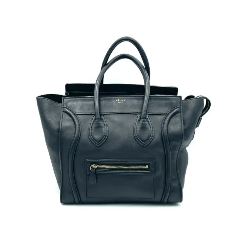 Celine Black Leather Luggage Bag Celine black leather luggage bag CONDITION A SIZE (CM) 30.5 X 28.5 X 18.5 3C-15711 ※Repair - X ※Components - X For all other inquiries, Kakao Talk channel "OVHANNAM". http://pf.kakao.com/_xgsMyb/chat