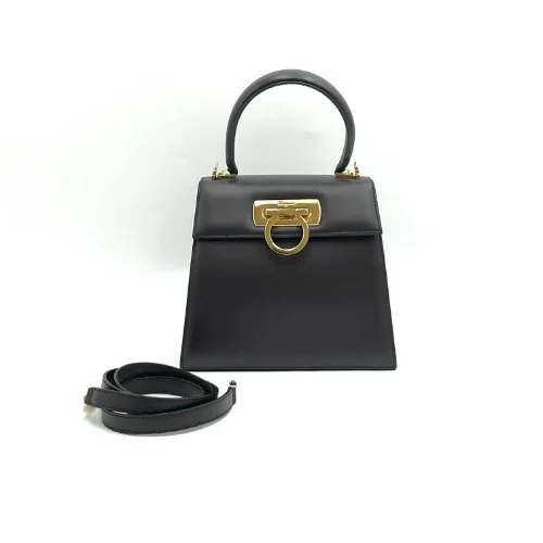 Ferragamo Deep Brown Gancini Kelly Bag Small