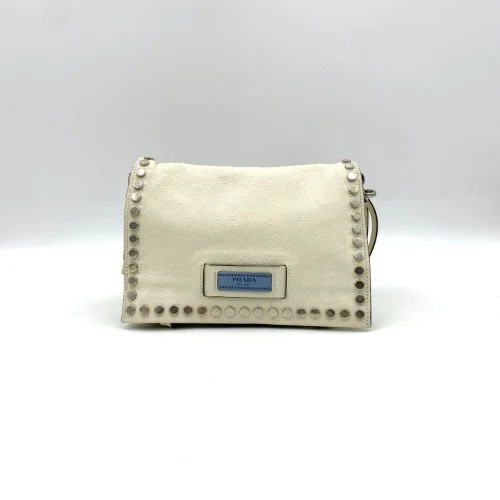 Prada Ivory Etiquette Studded Two-Way Bag 1BD082