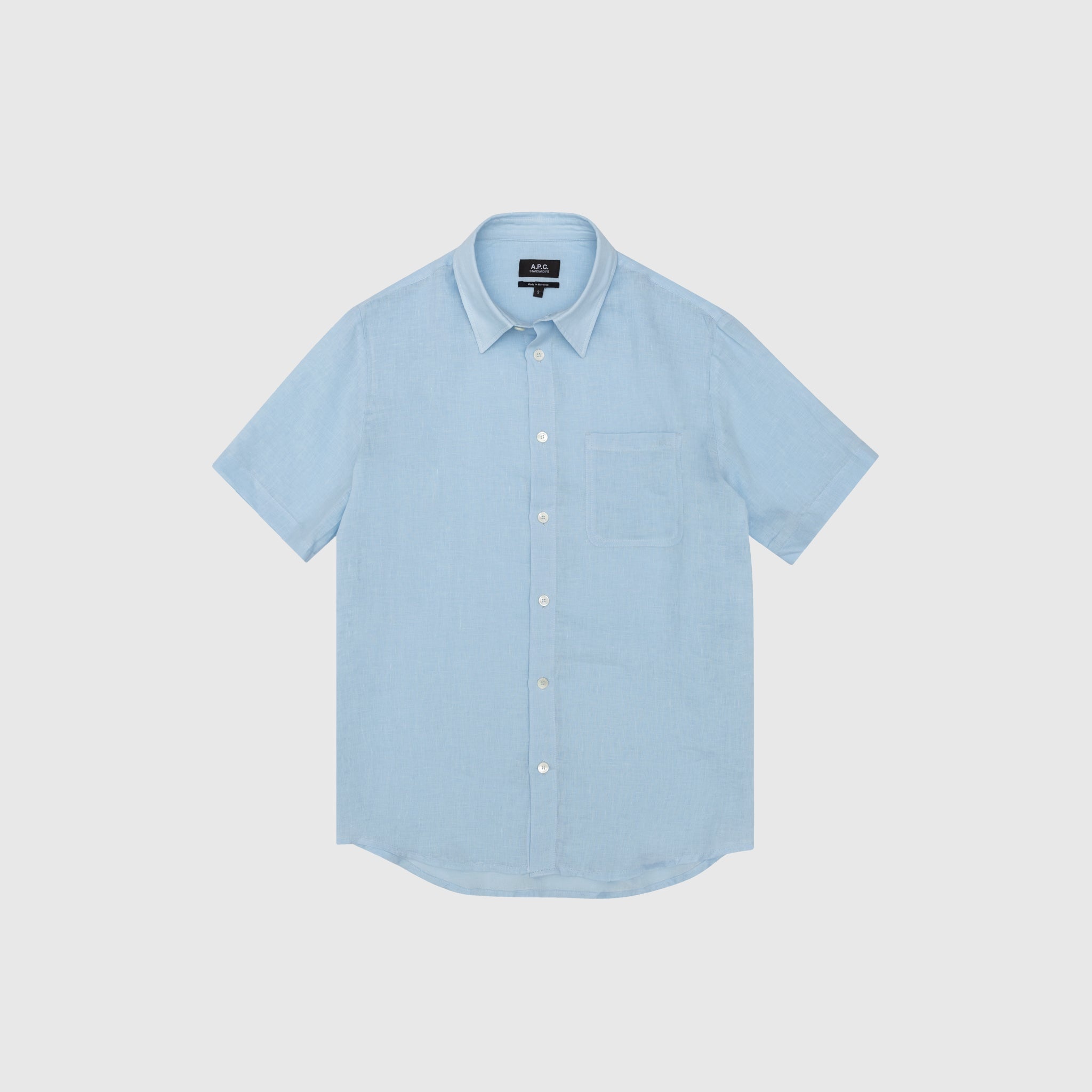 - LIAEK-H12551-IAB - Light Blue - 100% Linen - Front button closure - Classic collar - Front chest pocket - Embroidered logo on the pocket - Rounded hem - Straight fit - Made in Morocco