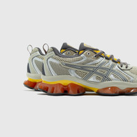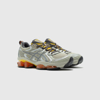 - 1203A270 026 - Fossil/Pure Silver - The Asics Gel-Quantum Kinetic combines elements and inspiration from the Gel series on a contemporary, experimental silhouette. - Mesh upper - Synthetic leather overlays - FF BLAST™ cushioning - Mesh tongue with ASICS branding - TPU and nylon eyelets - Gel branding at the heel - Padded collar - Scutoid GEL™ technology - Geometric pattern rubber outsole