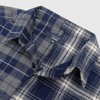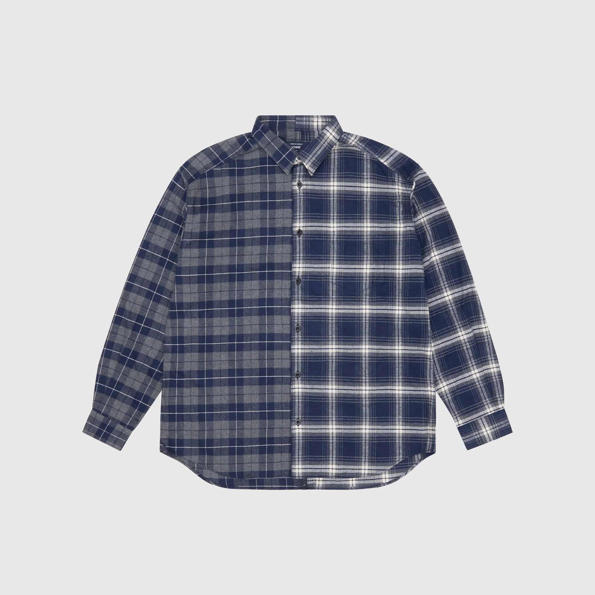 - HP-B021-051-1 - Navy/Grey - 100% Cotton - Paneled construction - Front button closure - Adjustable button cuffs - Curved hem - FW25 - Made in Japan