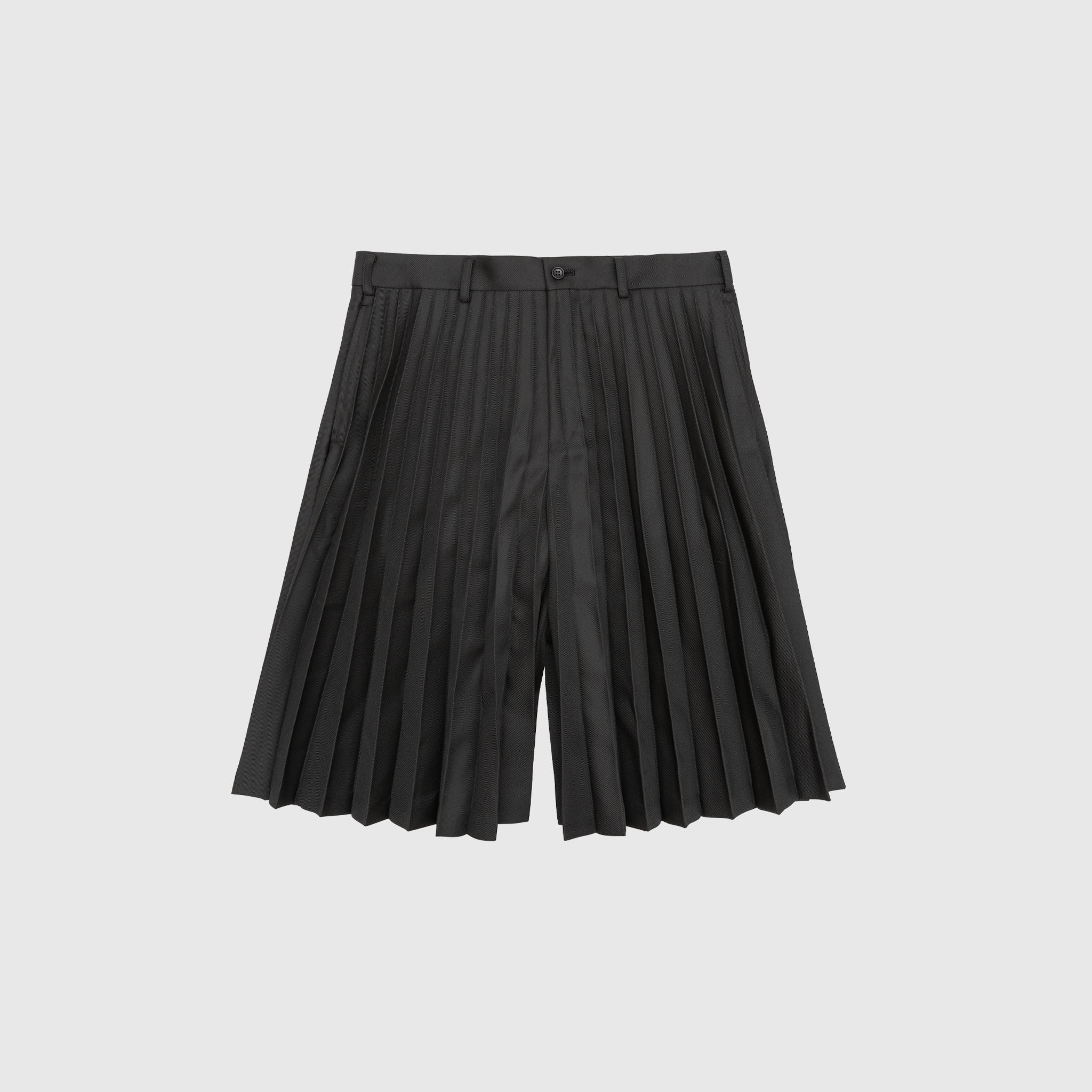 - PN-P021-051-1 - Black - 100% Polyester - Front button and zipper closure - Pleated throughout - Two side welted pockets - Made in Japan
