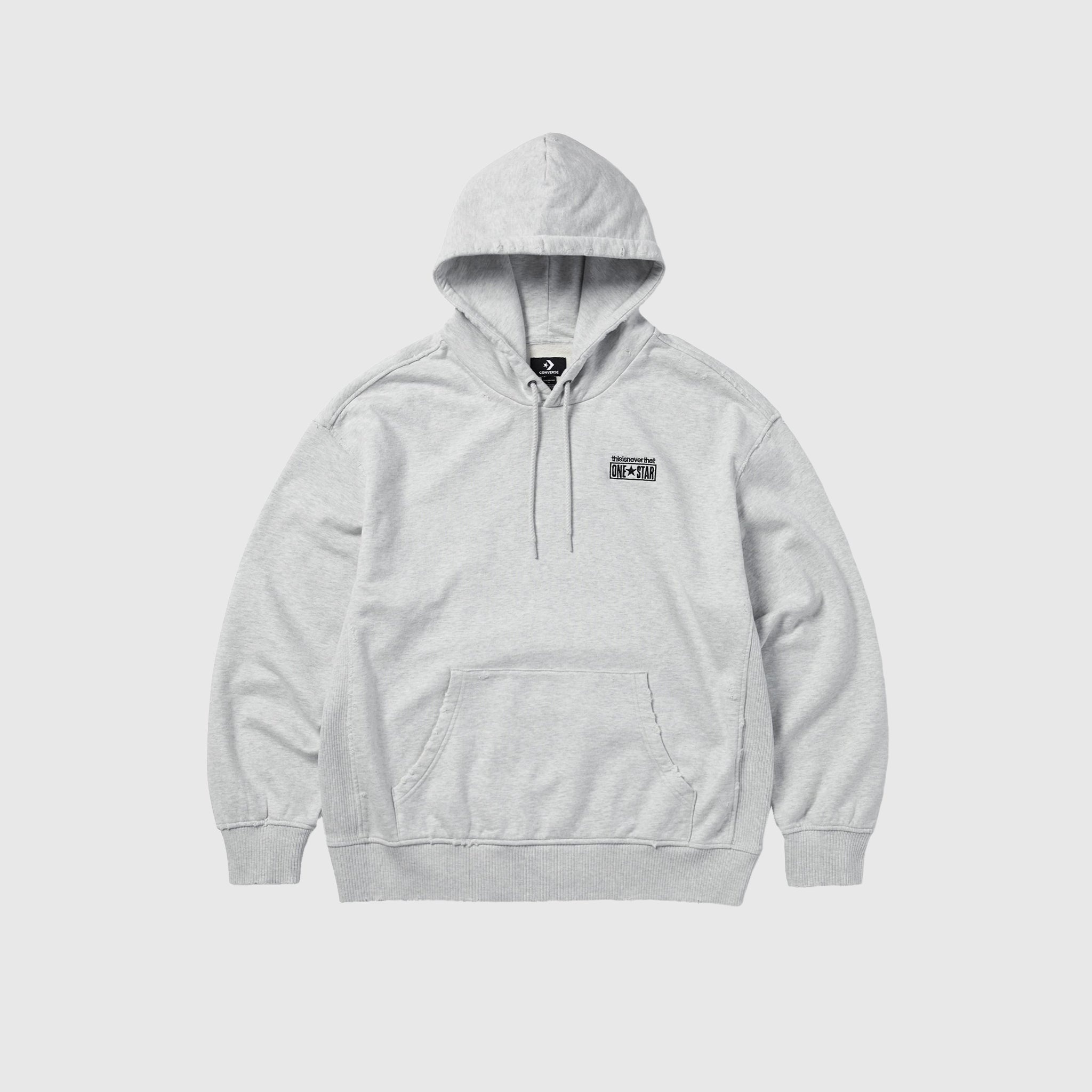 - 10027832-A01 - Heather Grey - 84% Cotton, 16% Polyester - Pullover drawstring hood - Embroidered logo at the front - Kangaroo pocket - Ribbed cuffs and hem - Distressed effect throughout - Relaxed fit