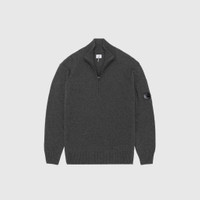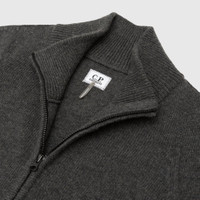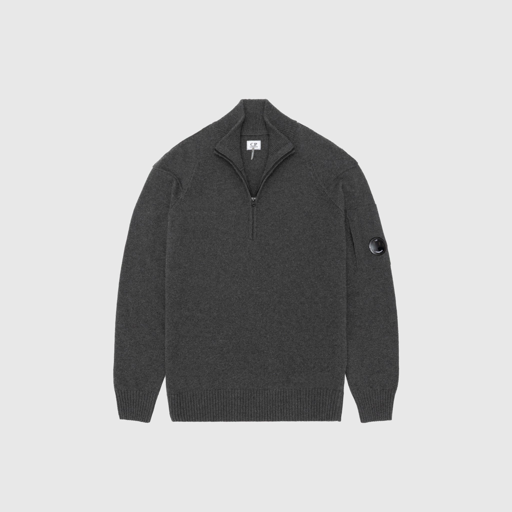 - 19CMKN709A-110149A-978 - Dark Shadow - 80% Wool, 20% Polyamide/Nylon - 7 Gauge knit - Half zipper closure - C.P. Company Lens detailing on the sleeve - Ribbed collar, cuffs, and hem - Regular Fit