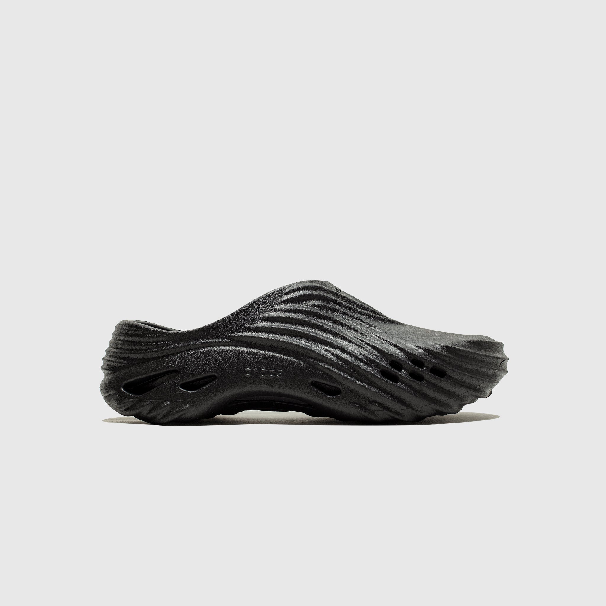 - 210521-060 - Black/Black - Crocs pushed the boundaries further with the Echo Wave - Digitally inspired sculpted upper - Ventilation holes - Embossed branding at the front and lateral sidewall - Dual-density support - LiteRide footbed - Crosslite outsole