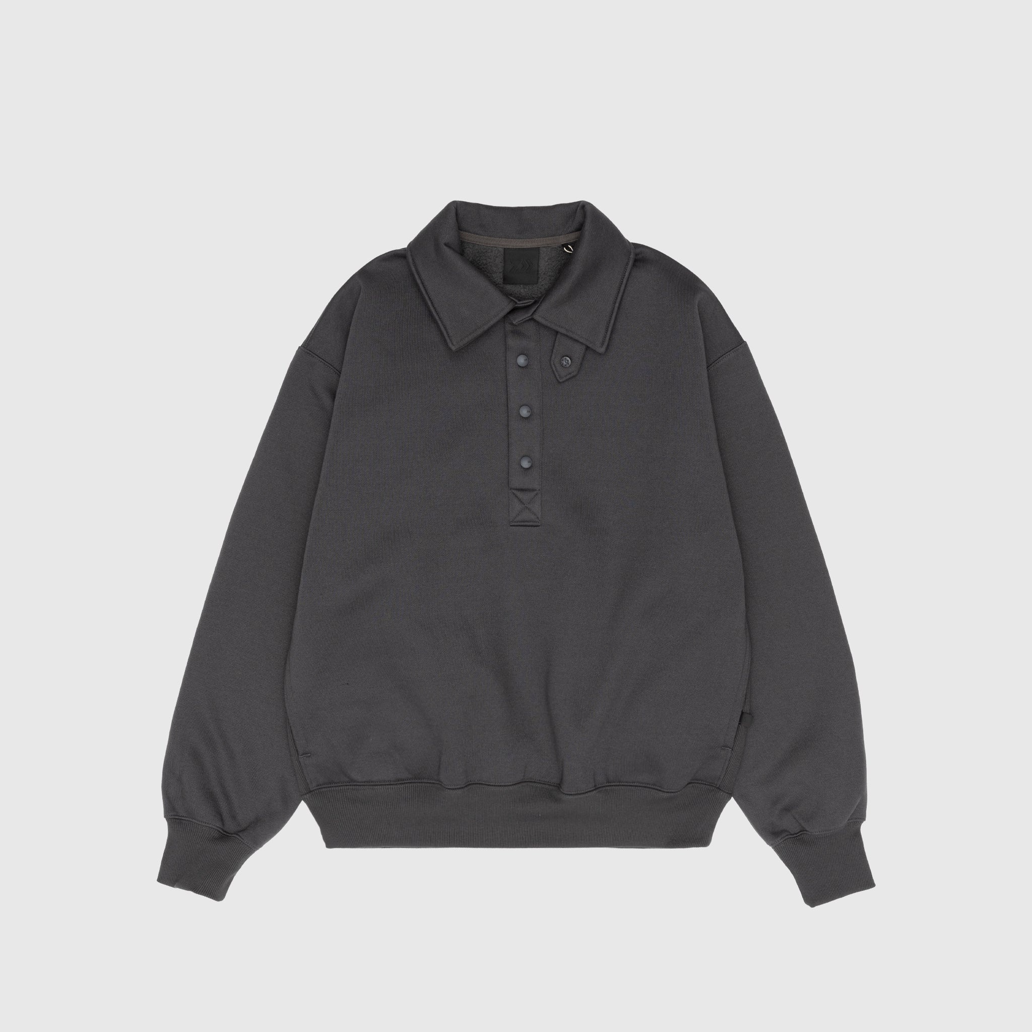 - 88-12-0002-704-17 - Charcoal - 100% Polyester - Front snap button closure - Two front-side welted pockets - Ribbed cuffs and hem - Chin strap with snap button - Stand up collar