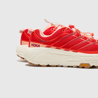 - 1141572-TVR - Tomato/Vermillion - Hoka's Mafate Three2 combines the extra cushioned sole of the Mafate Speed 2 and the striking upper design from the Mafate 3 - Mesh upper - Hot melt overlays - Gusseted tongue with quick-lace system - Branding on the lateral back heel - Lightweight no-sew SpeedFrame construction - Lightweight external TPU heel counter - Compression-molded EVA midsole - Vibram® Megagrip outsole