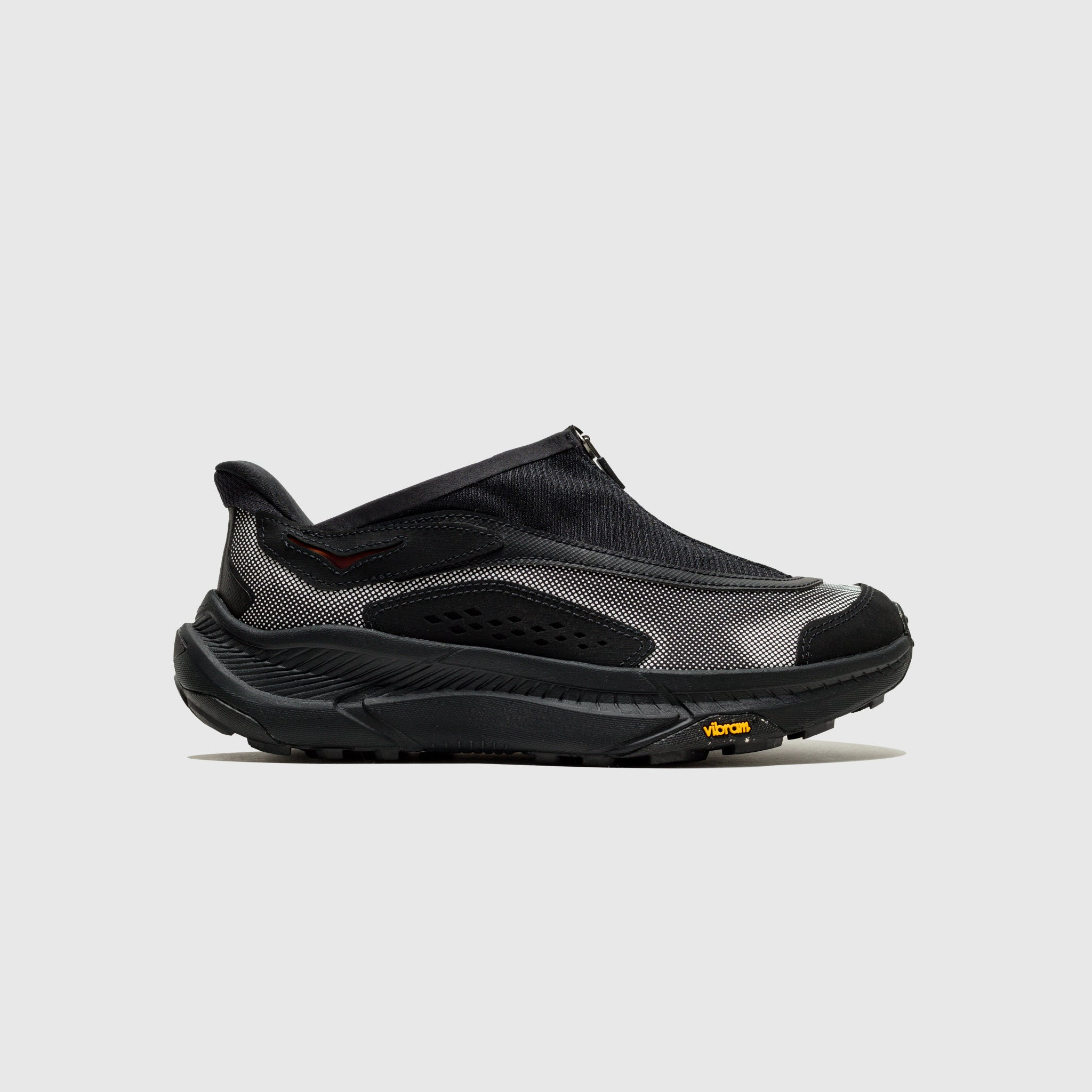 - 1168953-BWHT - Black/White - A tech-forward take on HOKA's commuter-friendly Transport model, blending functionality with sleek, street-ready design. - 3D-printed grid upper - Synthetic leather overlays - PFC-free durable water repellent finish - Haptic-dot matrix print - Ripstop zipper shroud - Branding on the lateral back heel - Quick-lacce system - Reflective detailing - Sugarcane EVA midsole - Vibram® Ecostep Evo outsole