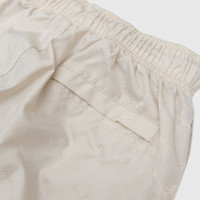 - IH3322 104 - Lt Orewood Brown/Lt Orewood Brown/Black - 100% Nylon - Mesh lining - Jacquard print throughout - Elasticated waistband with drawstrings - Two side welted pockets - One back welted pocket with snap button closure - Contrast piping on the front and back - Embroidered "JUMPMAN" logo at the thigh - Adjustable drawcord cuff - Loose fit