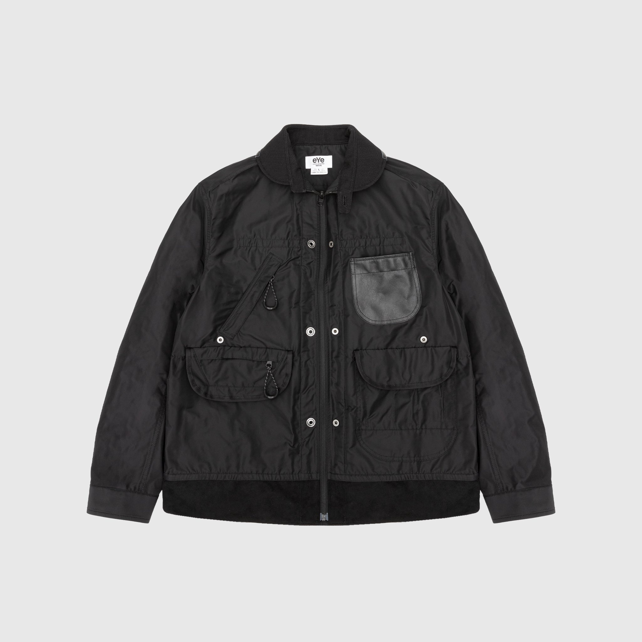 - WO-J902-100-1 - Black/Black - 100% Polyester - Front zipper closure with silver button detailing - Front chest patch pocket - Front chest pocket with zipper closure - Two front waist pockets with flap and snap button closure - Interior zipper pocket with zipper closure - Interior pouch pocket - Adjustable button cuffs - Waist snap-button adjusters - Curved hem - SS25 - Made in Japan