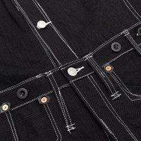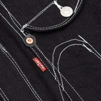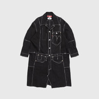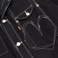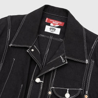 - WL-C901-100-2 - Black/White - 100% Wool - Raw denim - Paneled construction - Front button closure - Front chest pocket with flap and button closure - Multiple rear patch pockets - Interior pockets - Contrasting stitching throughout - Oversized pointed collar - Adjustable button cuffs - Adjustable buckle strap in the back - Raw cut hem - FW23 - Made in Japan
