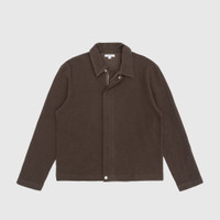 - LW1660-BRK - Bark - 92% Cotton, 8% Linen - Fabric developed in Japan - Double knit cotton - Linen blend - Hidden front zip and snap button placket closure - Dropped shoulders - Regular fit - Made in USA