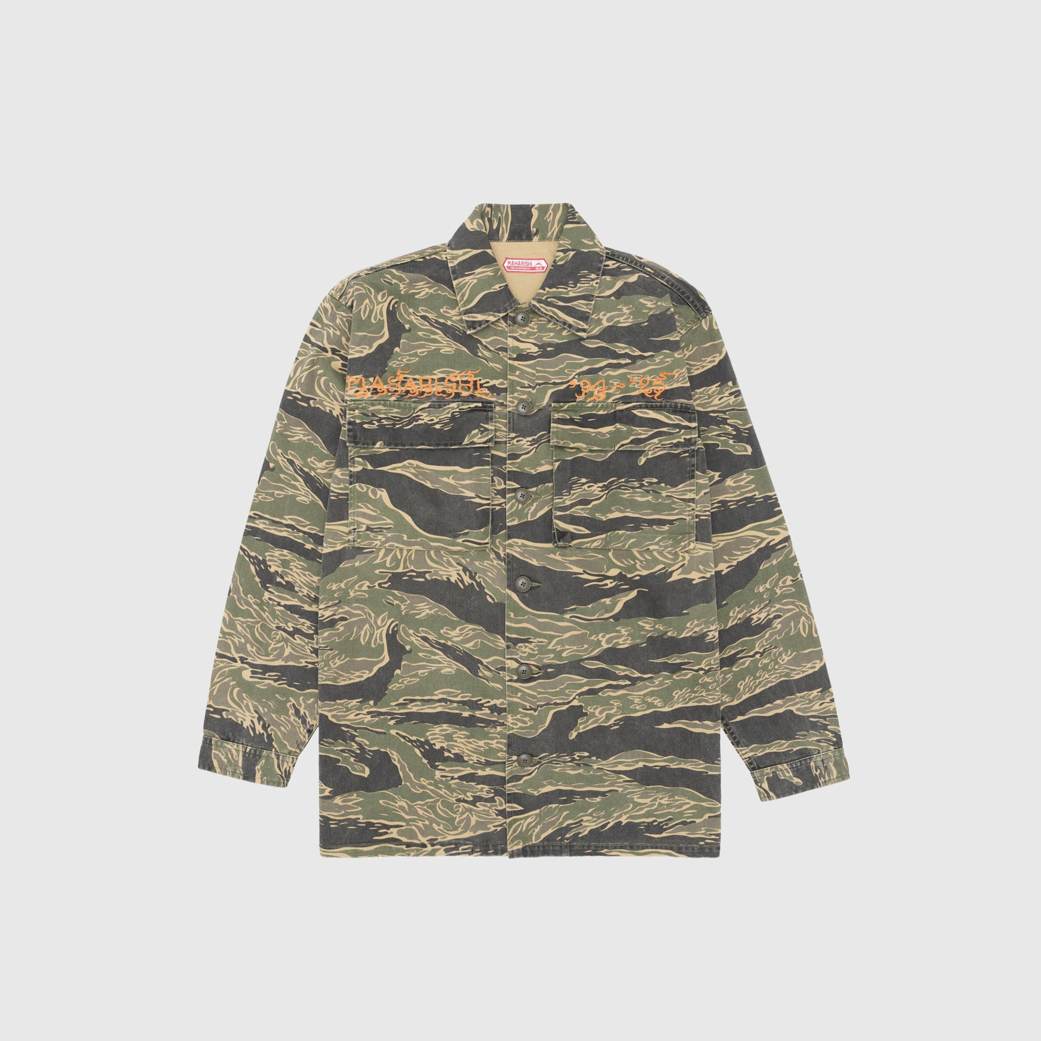- 6077-MTGD - Mint Gold - 100% Cotton - Cotton Twill - Front button closure - Two front pockets with a flap and button closure - Embroidered graphics on the chest and back - Adjustable button cuffs - Regular fit
