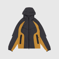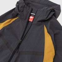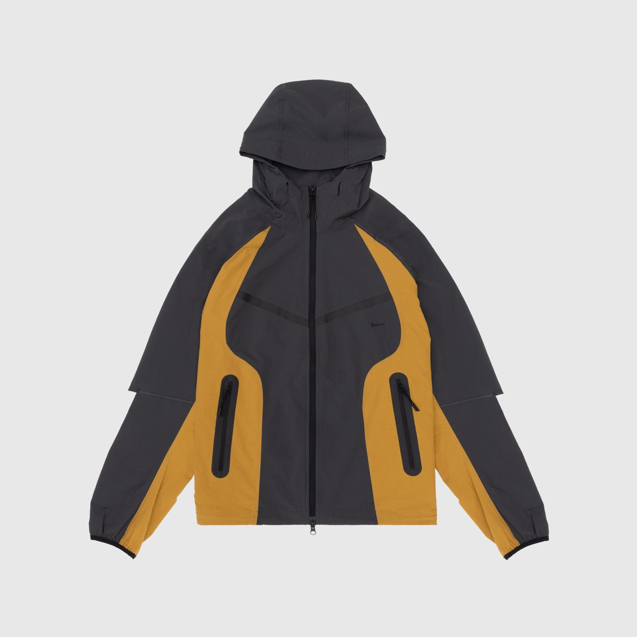 - IH8461 060 - Anthracite/Ochre/Black - 94% Nylon, 6% Spandex - Nike Dri-FIT technology - Paneled construction - Front two-way zipper closure - Two front pockets with a zipper closure - Pullover hood with adjustable drawcord - Embroidered swoosh on the chest and back - Reflective stitching throughout - Articulated elbows - Elasticated cuffs - Relaxed fit