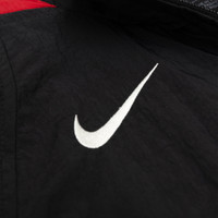 - HQ3391 010 - Black/Gym Red/Sail - 100% Nylon - Mesh lining - Water-repellant - Front zipper closure - Two front pockets with a zipper closure - Embroidered swoosh on the front - Embroidered Nike Soccer Shield on the sleeve - Embroidered Total90 branding on the back - Stand-up collar - Elasticated cuffs - Loose fit