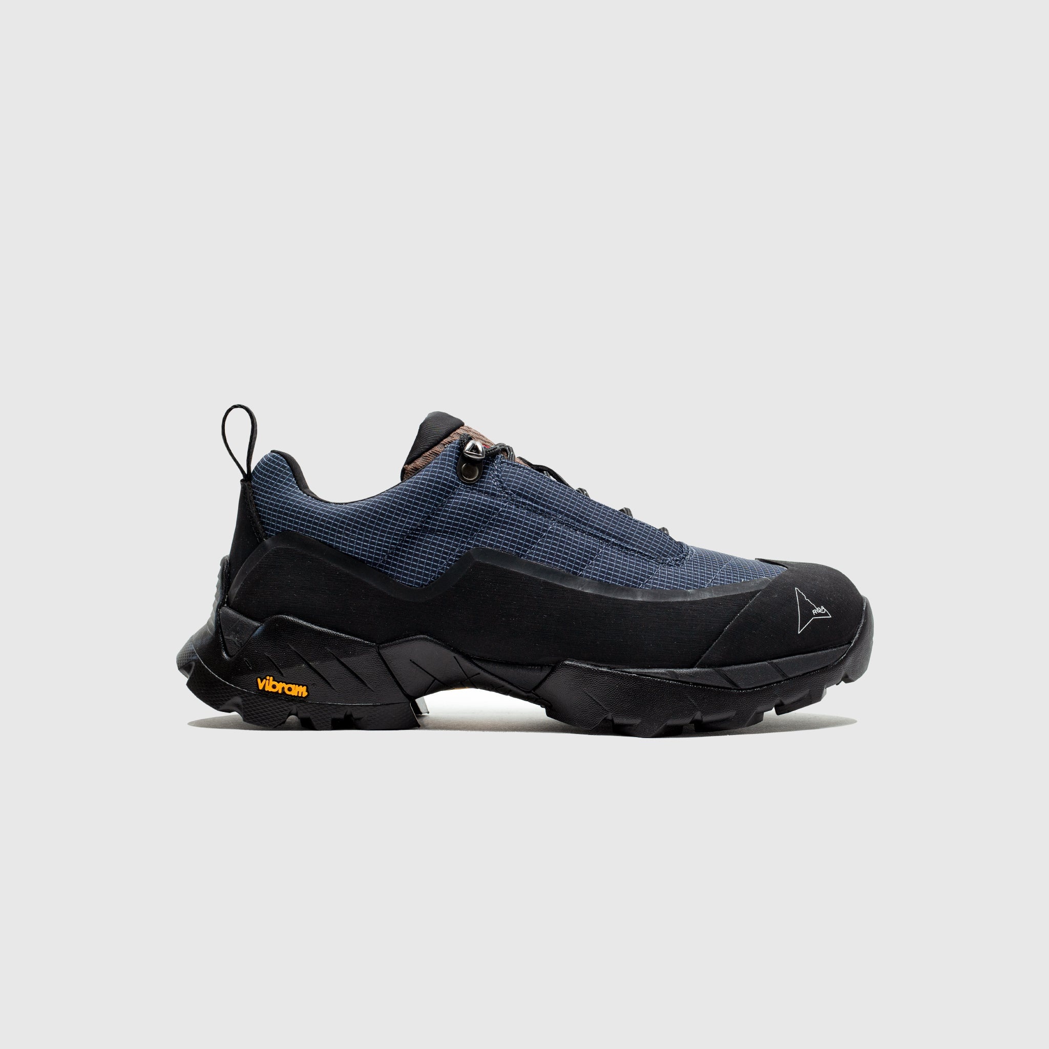 - NBUW106FA06 - Navy/Black - Ripstop nylon upper - Logo printed at rubber to cap - Mesh padded tongue with logo embroidery - Nubuck heel panel - Padded collar - Heel pull tab - Lace closure - Lugged Vibram® Megagriptoothed tread pattern outsole - Please note these fit one size large. Recommend sizing down one size for a more true fit