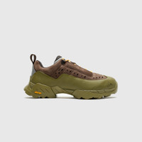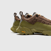 - NBUW142LE10 - Butternut/Olive - Nubuck leather upper - Logo printed at rubber to cap - Mesh padded tongue with logo embroidery - Ventilating cut-out details - Reflective heel panel - Padded collar - Heel pull tab - Lace closure - Lugged Vibram® Megagriptoothed tread pattern outsole - Please note these fit one size large. Recommend sizing down one size for a more true fit