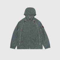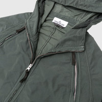 - K2S15Q100013 S0A31 V005E - Juniper - 68% Polyester, 32% Polyamide/Nylon - Lightweight Tela - Garment dyed - Front two-way zipper closure - Two front welted pockets with snap closure - Two front gussets with a zipper closure - Pullover hood with adjustable drawcord - Removable Stone Island badge on the left sleeve - Adjustable drawcord at the hem - Adjustable snap button cuffs - Eyelets under armholes - Raglan sleeves