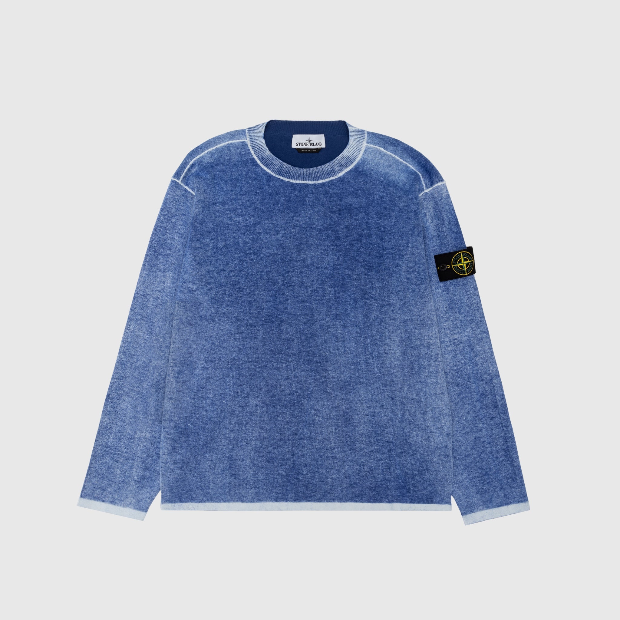- K1S155100031 S00Z2 V0028 - Marine Blue - 100% Cotton - Raw-hand light organic cotton - Airbrush-sprayed interior - Ribbed collar - Removable Stone Island badge on the left sleeve - Exposed seams detailing - Dropped shoulder - Oversized fit - Made in Italy