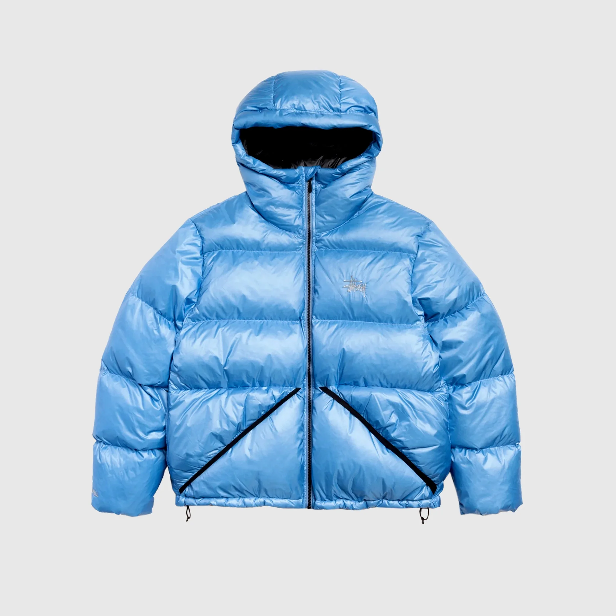 - 115685-SKYB - Sky Blue - 100% Nylon - Fill: 90% Down, 10% Feathers - Nylon micro ripstop - Front zip closure - Pullover hood with adjustable shock cord - Two lycra-bound front pockets - Interior mesh pockets - Embroidered Stussy basic stock logo on the left chest - Elasticated cuffs - Adjustable drawcord hem