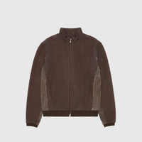 - EP08JS01BR - Brown - 97% Polyester, 3% Spandex - Asymmetrical paneled construction - Front two-way zipper closure - Two front welted pockets - Cut-out detailing - Stand-up collar - Ribbed cuffs and hem