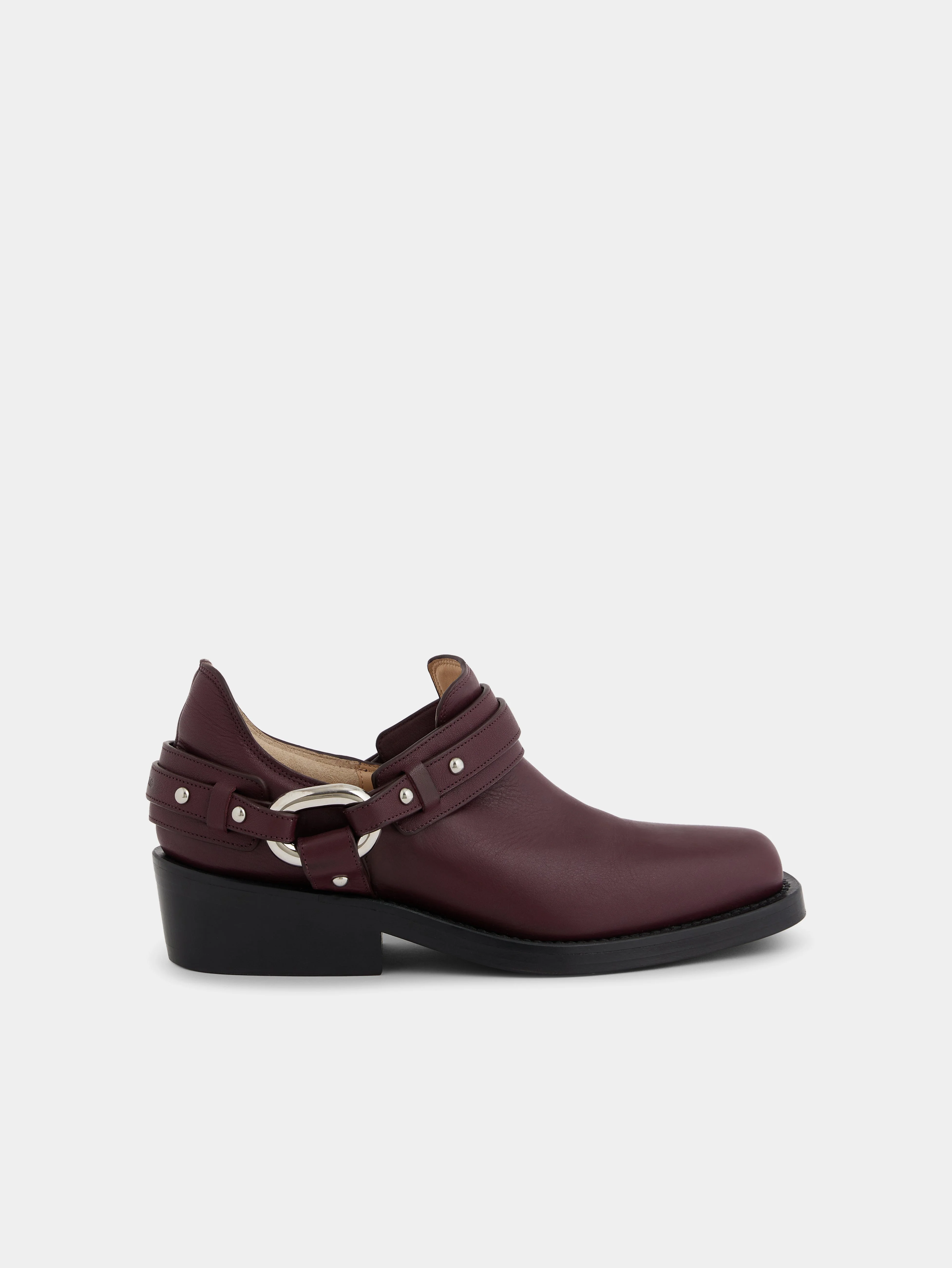 Biker ankle boots signed with Rabanne iconic XL Link. - Color: Burgundy / Silver - 100% Leather - Made in Italy