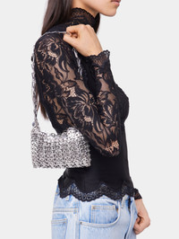 - Colour : Silver - Size : Nano line - 282 silver discs bonded by metal rings - Silver metal chain with Rabanne logo - Assembled by hand - Can be carried by hand or over the shoulder DETAILS - Composition : 100% Brass - Width 16cm - Length 11.5cm - Depth 2.5cm - Strap drop length 55cm - Weight 0,4kg