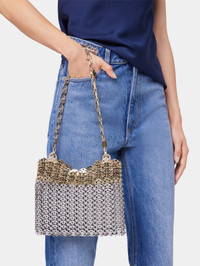 Relaunch of the Iconic 1969 bag. This radiant gold and silver bag is a true reflection of the identity and expertise of Maison Rabanne. The skyline folding bag is a unique fabrication of 367 gold and silver discs bonded by metal rings. DETAILS Carry on the shoulder or by hand - Width 23 cm - Length 15 cm - Depth 3 cm - Composition : 100% Brass