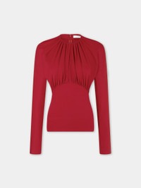Long-sleeve textured jersey top with ruching details on the front. - Color: Red wine - Long sleeves - Round neck - 79% Viscose, 17% Polyamide - Made in Tunisia Size & Fit - Model's height: 180 cm / 5ft 11in - Model wears a size FR 36 / UK 8 / US 4 - This style is true-to-size - We recommend your usual size.