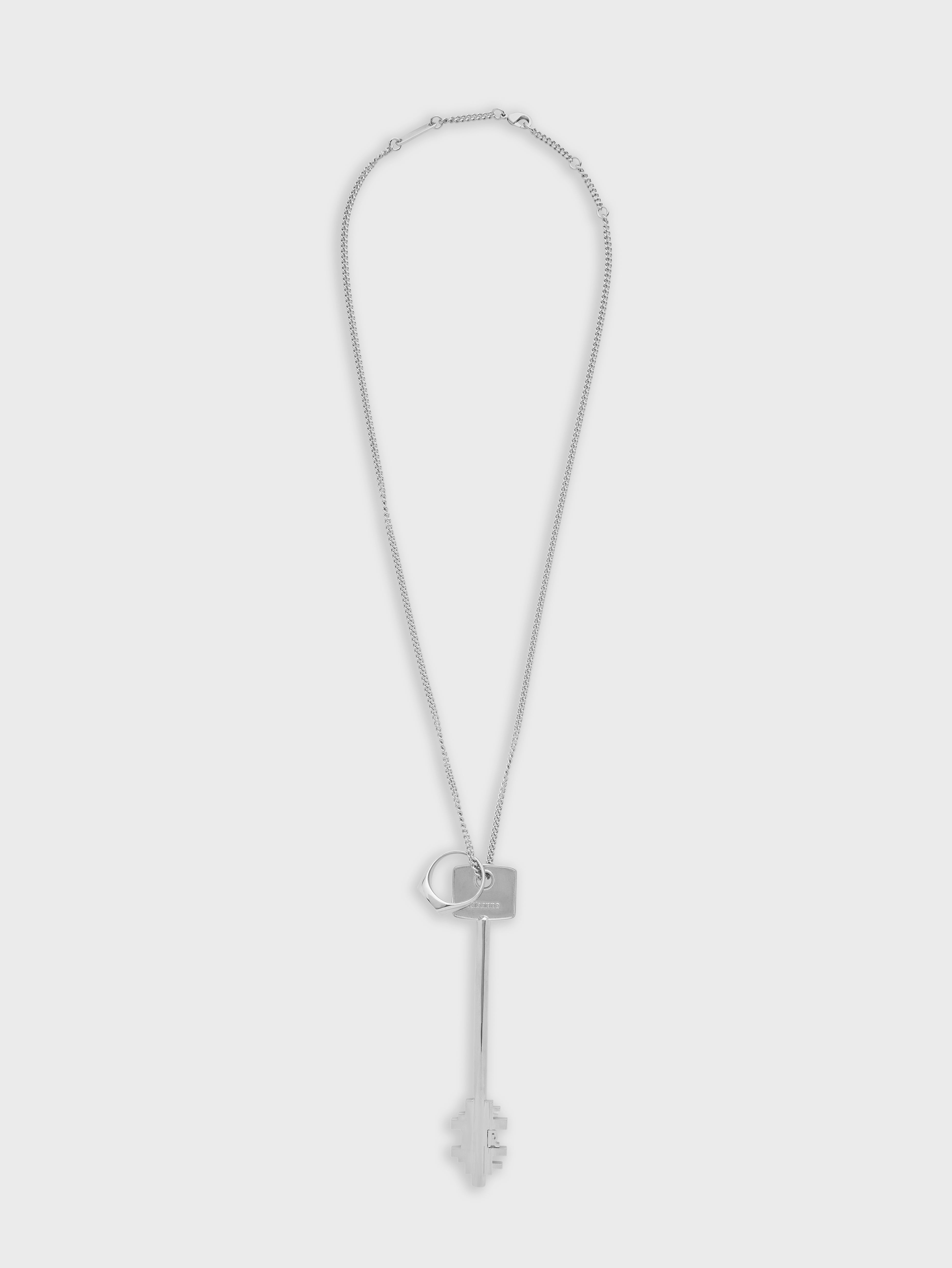 Signature necklace from the show FW25 featuring a key pendant and a ring covered with rhinestones. - Color: Silver / Rhinestones - Composition: 100% Brass - Made in Italy