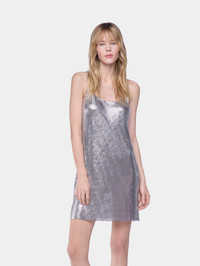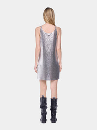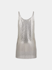 Mini tank top dress in silver mesh. Crew neck Sleeveless Mini length Closure with 12 silver snap buttons. - Color : Silver - Mini tank top dress in silver mesh. - Crew neck - Sleeveless - Mini length - Closure with 12 silver snap buttons. DETAILS This style is true-to-size. We recommend your usual size. - Composition : 100% Aluminium - Made in Madagascar