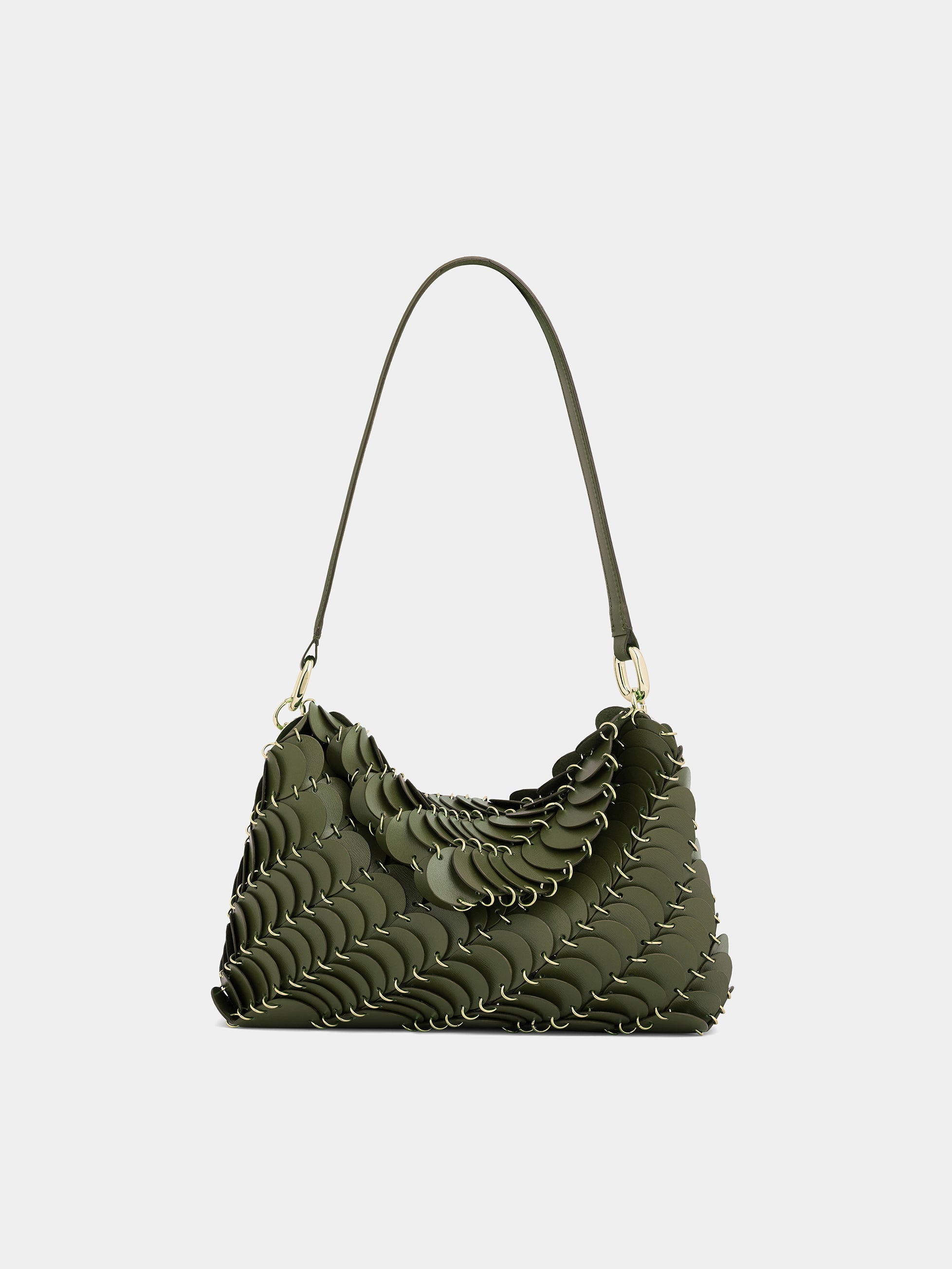 - Color: Khaki / Gold - Flapbag with leather handle. Multiple wears : handcarry or over the shoulder. - Magnetic flap closure. DETAILS - Composition: 100% Calfskin - Made in Hungary