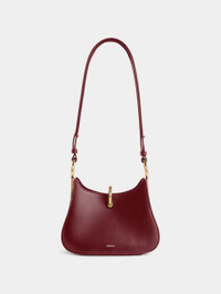 Small Ring Bag in Italian box leather. - Color: Burgundy / Gold - Dimension: 15.5x20.5x8.5cm - Sliding metallic ring closing system inspired by the iconic Rabanne ring. - Gold-tone metal hardware. - 100% Leather - Made in Spain
