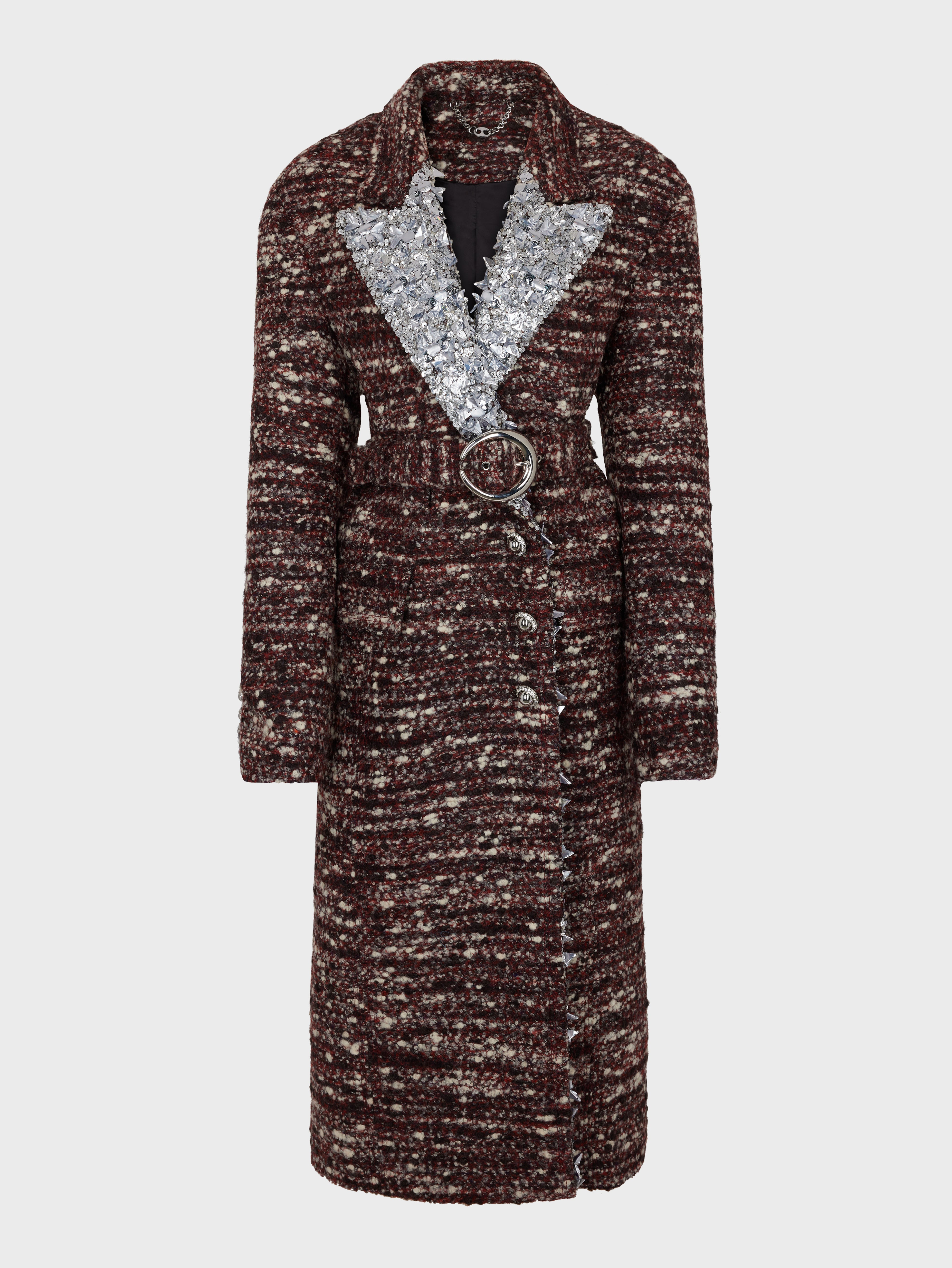 Tailored coat in boucle wool, adorned with sequin details. - Color: Chine Purple - Composition: 82%Virgin wool, 18% Polyester - Made in Morocco Size & Fit - Model's height: 180 cm / 5ft 11in - Model wears a size FR 36 / UK 8 / US 4 - This style is true-to-size - We recommend your usual size.